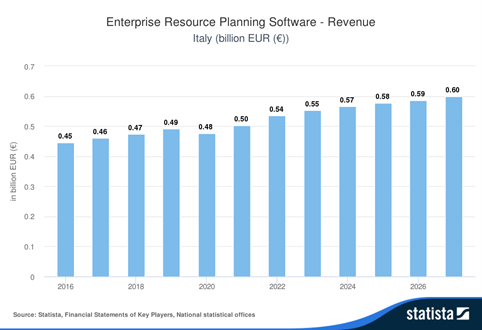 Il mercato degli ERP in Italia cresce a ritmi sostenuti. Fonte: Statista
